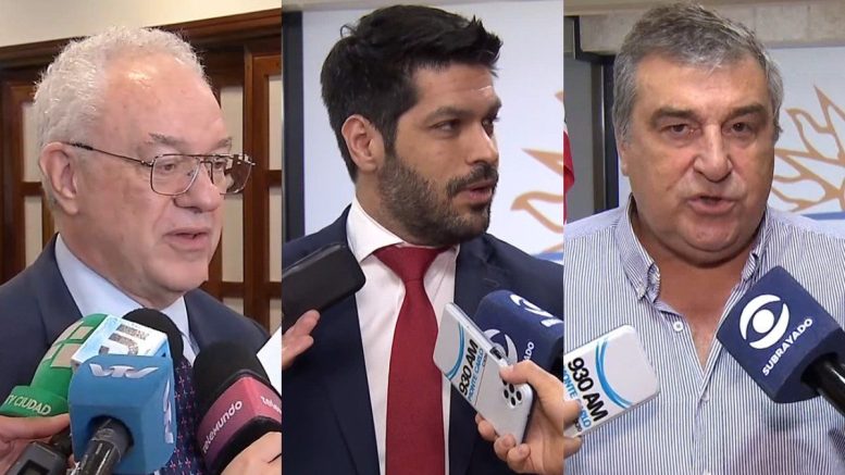 El canciller Mario Lubetkin, el secretario general del Partido Colorado, Andrés Ojeda, y el senador nacionalista, Sergio Botana, analizaron las incidencias para Uruguay.